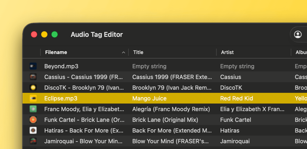 Edit your track's title, artist, album, and other metadata in a single view. Add, replace, or remove album artwork to keep your music library visually organized.
