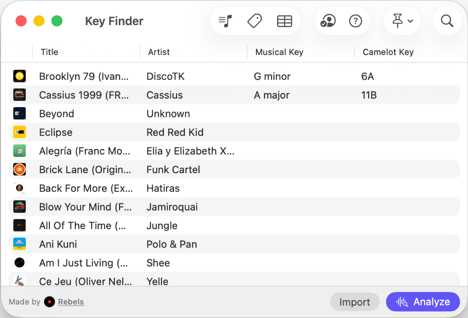 Key Finder is built to do one thing: detect the musical key of your tracks. Analysis runs on-device in about a second per track, entirely offline. Your audio files never leave your Mac, iPhone, or iPad.